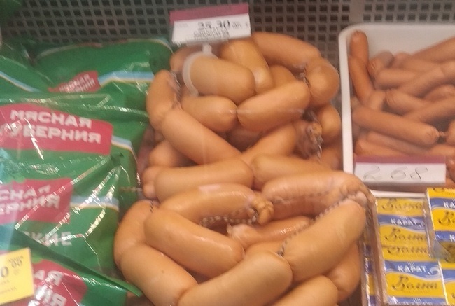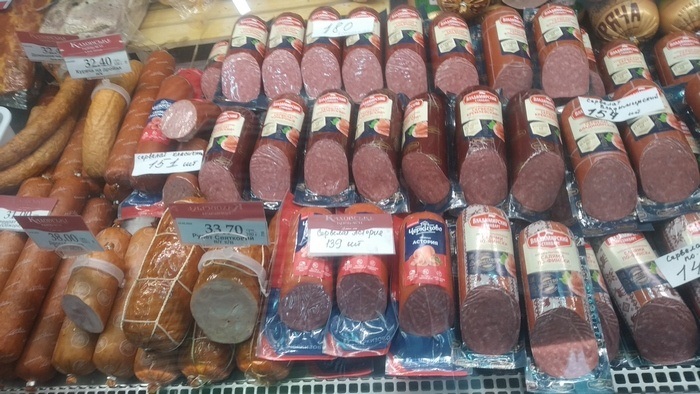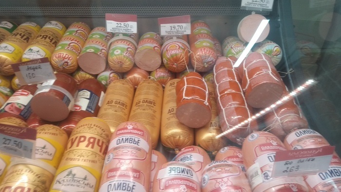 Також вражає розмаїття ковбасних виробів у невеликих спеціалізованих крамницях. Їх відкривається останнім часом все більше. Тут можна придбати ковбаси як російського виробництва, так і місцевого виробника торгової марки «Каховські ковбаси». Хоча покупці часто нарікають, що якість далеко не відповідає ціні. Прикметно і те, що на цінниках вказують вартість виробів за 100 грамів.