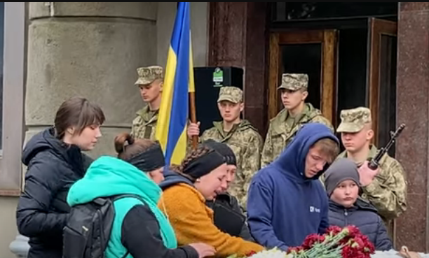 На прощання з військовим 13 квітня прийшли жителі Каховки, які виїхали з окупованого міста до Одеси. Ось, що вони кажуть: