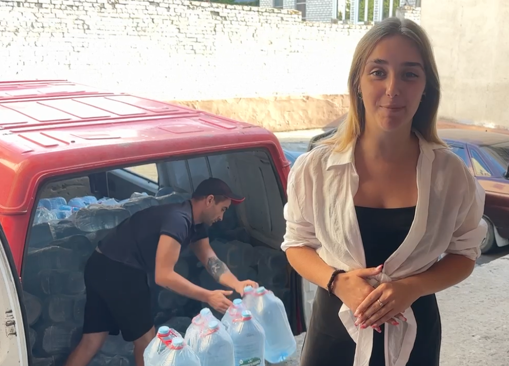 "Воду привезут жителям сел и поселков Новокаховского городского округа, а также выдадут нуждающимся новокаховчанам", — розповіла керівниця управління "Служба поддержки гражданского населения" Олександра Краснянська у відео на пропагандистському телеграм-каналі (на фото).