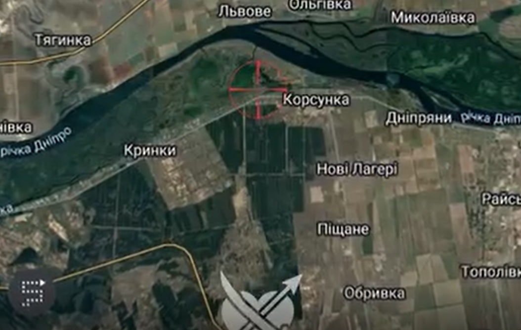 Також бійці опублікували мапу місцевості, де встановлений прапор. Як видно, це біля села Корсунка Новокаховської міської територіальної громади.