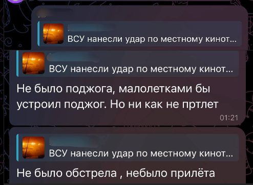 "Нацисты из ВСУ продолжают террор мирного населения Обстреляли местный кинотеатр в Каховке. Пострадавших нет. Повреждения серьезные", - написав у телеграмі гауляйтер Каховки Павло Філіпчук о 20.50.
