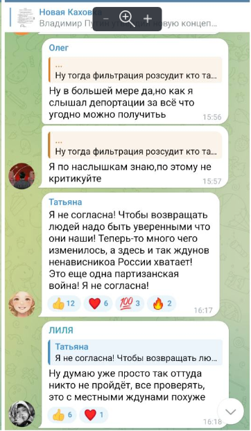 Таким чином, обговорення показує: повернення» в російському розумінні — це інструмент контролю, а не турботи. Люди самі визнають небезпеку “фільтрацій”, яку влада намагається приховати під виглядом “перевірок безпеки”.