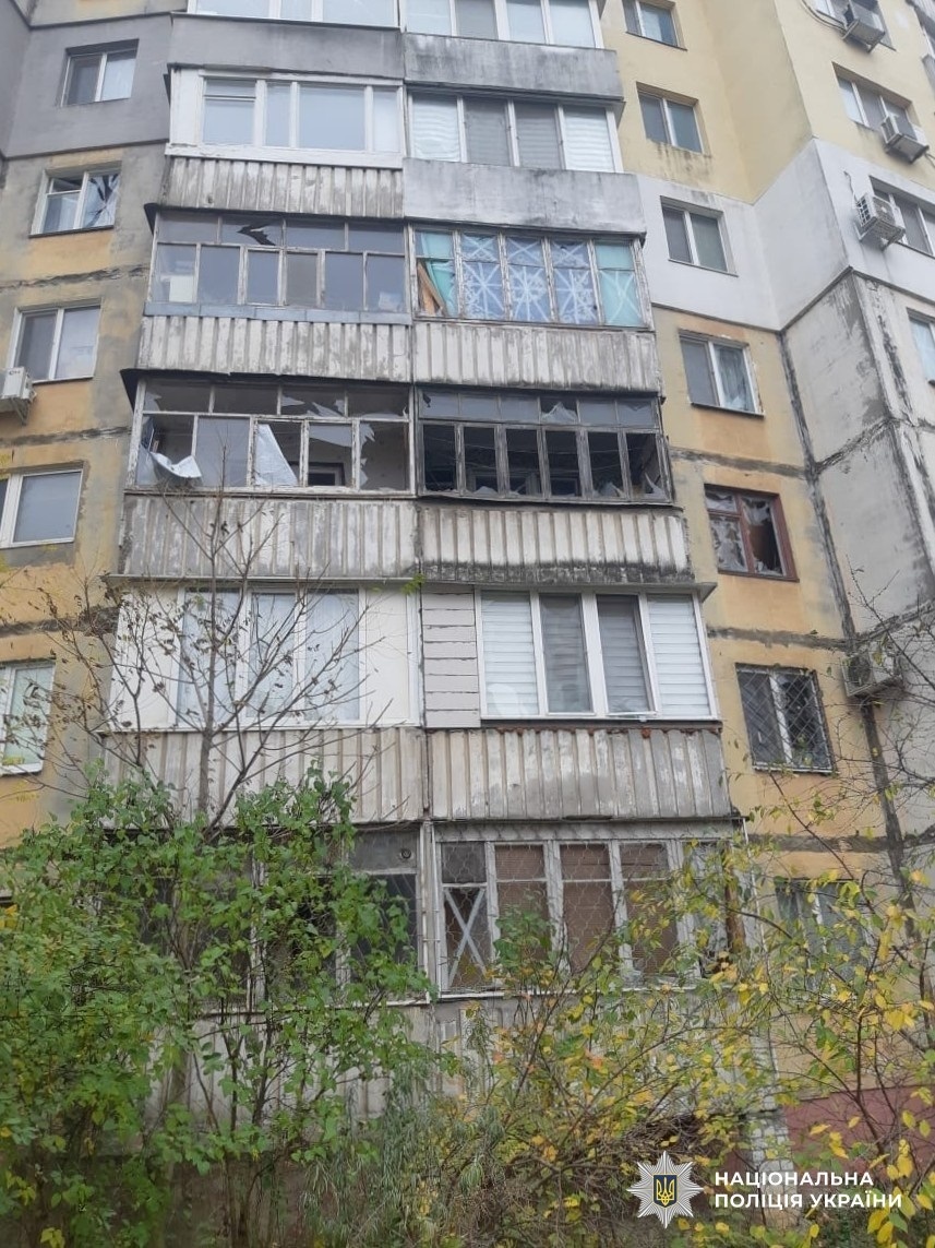 Внаслідок атак із боку російських військ пошкоджено п’ять багатоквартирних та дев’ять приватних будинків, об’єкт критичної інфраструктури, медичний заклад, три автомобілі, два гаражі, повідомила поліція області.