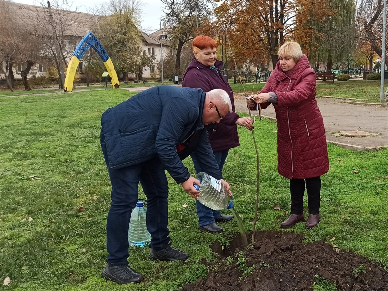 Новокаховська міська військова адміністрація спільно з представниками Каховської районної військової адміністрації долучилися до ініціативи та висадили 10 саджанців лип у Саксаганському парку Кривого Рогу.