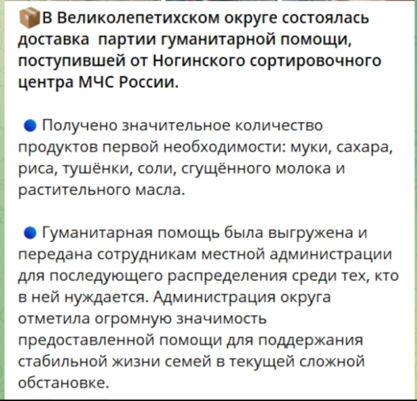 В окупованій частині Херсонщини дійсно настільки складна ситуація з продуктовим забезпеченням, що «допомогу» везуть вже не лише для багатодітних та малозабезпечених родин, а для всіх. Це перестало бути суто пропагандистським заходом, хоча частково ним і лишається: в окупації дуже великий дефіцит продуктів, створений саме через окупацію.