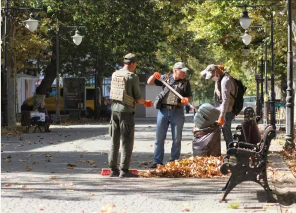 Комунальники прибирають міські вулиці у бронежилетах, щоб у разі атаки мати хоча б мінімальний захист.
