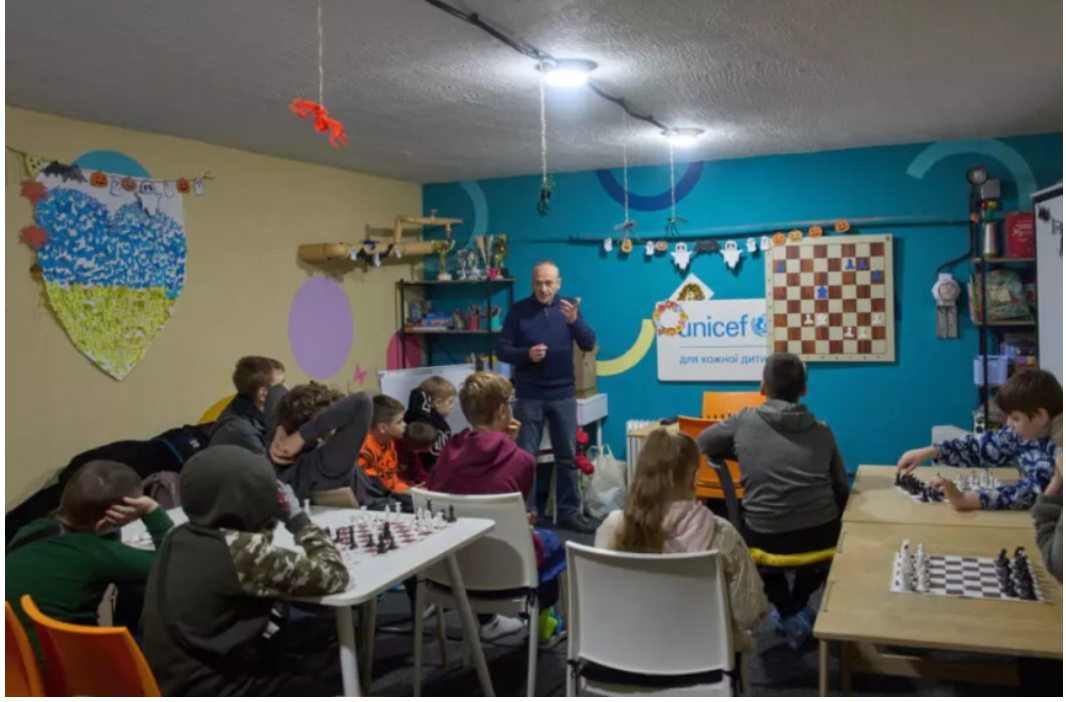 Щоб зберегти почуття простого життя, деякі види діяльності, особливо для дітей, перемістилися під землю. Активності зі шкіл чи будинків культури перемістилися до підвалів. Тут діти навчаються грати у шахи у підземному укритті.