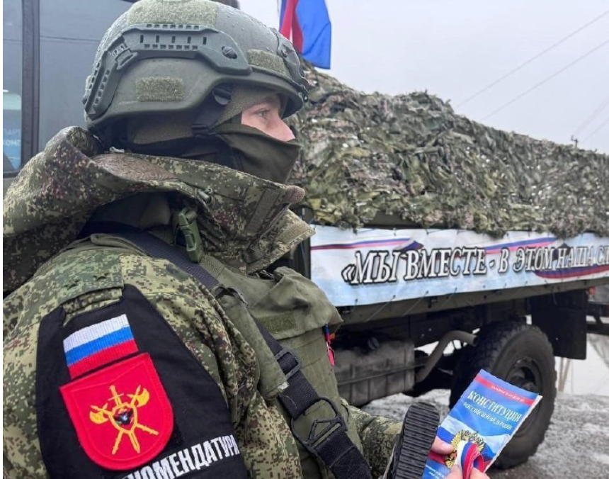 На блокпостах на тимчасово окупованій території Херсонській області російські окупанти провели показову акцію: водіям і пасажирам роздавали так звані російські «збірники законів» та триколорні стрічки. Про це повідомляють активісти руху спротиву «Жовта Стрічка» з Генічеська.