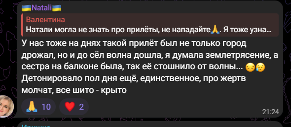 У соцмережах повідомляється, що вчора у місті був сильний вибух, будинки трясло більше ніж зазвичай. Де саме "прилетіло", не повідомляється.