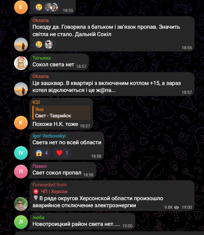 Жителі Нової Каховки ще вдень скаржилися на відсутність електрики та зв'язку в окремих районах міста.