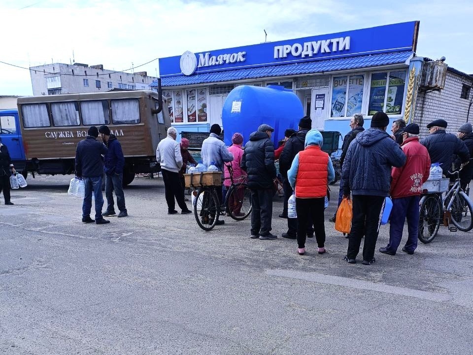 Після підриву росіянами греблі Каховської ГЕС вода у водопроводі непридатна для пиття і готування. їжі. Комунальники привозять воду для жителів за графіком. Люди виживають як можуть і чекають звільнення міста.
