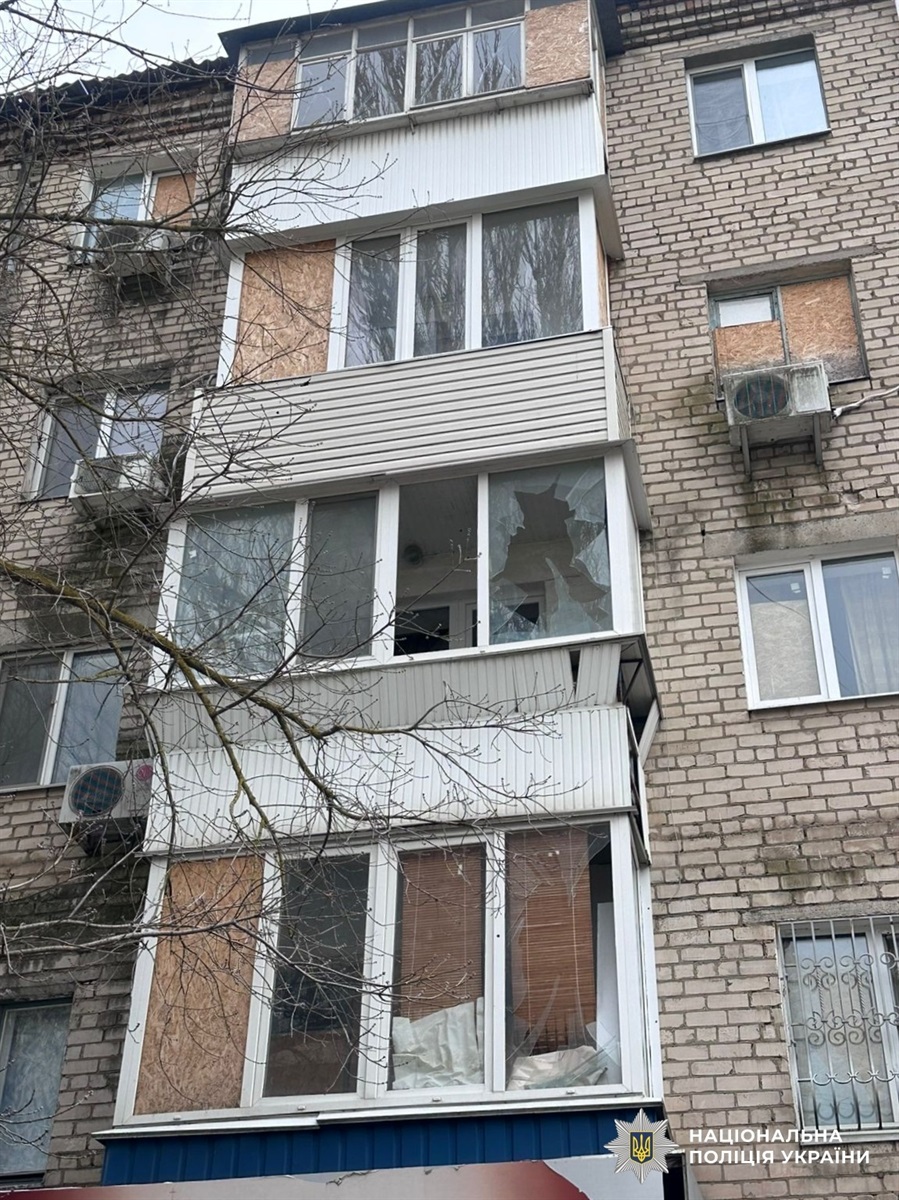 Через скид вибухівки з БпЛА у центральній частині міста 32-річний чоловік отримав мінно-вибухову травму й контузію. Внаслідок артобстрілу пошкоджено багатоквартирний будинок.