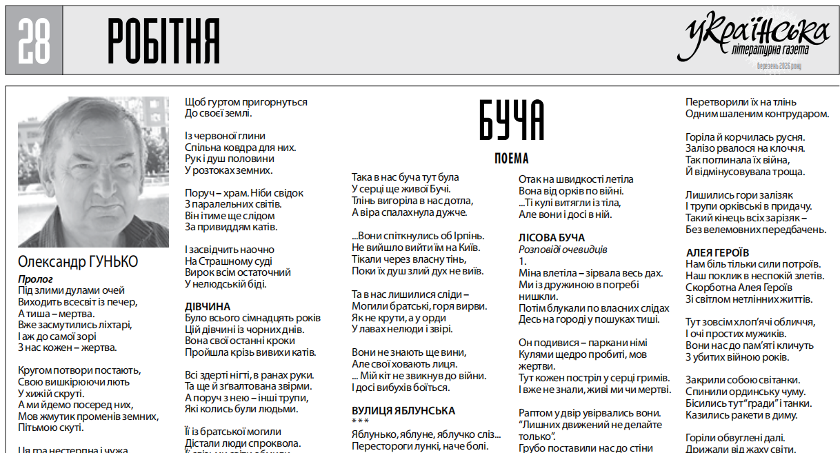 Поза тим поема вже опублікована в "Українській літературній газеті". Незабаром її повний текст з'явиться на сайті видання у рубриці "Поезія".